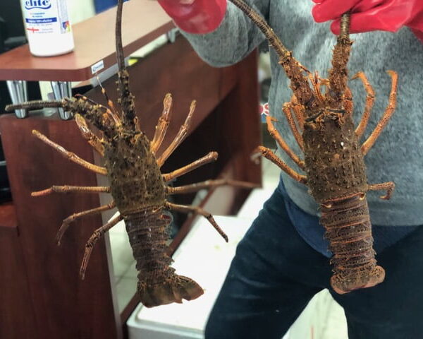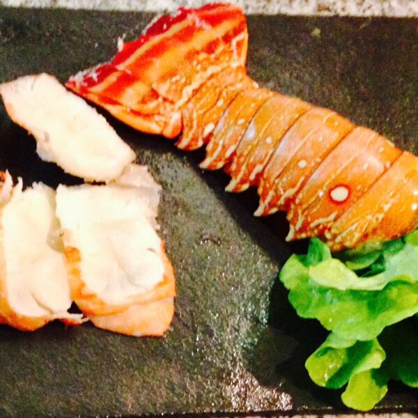 Cola de langosta del Caribe. Colas de langosta cruda, con concha y congelada individualmente